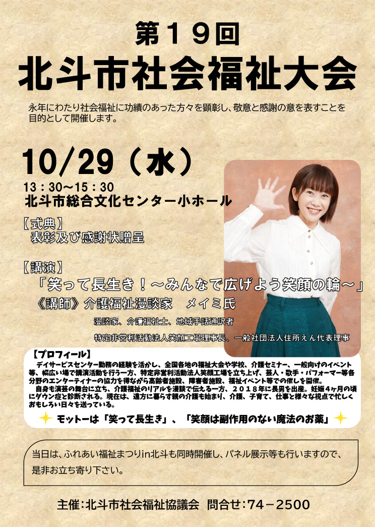 10月29日に第19回北斗市社会福祉大会が開催されます。